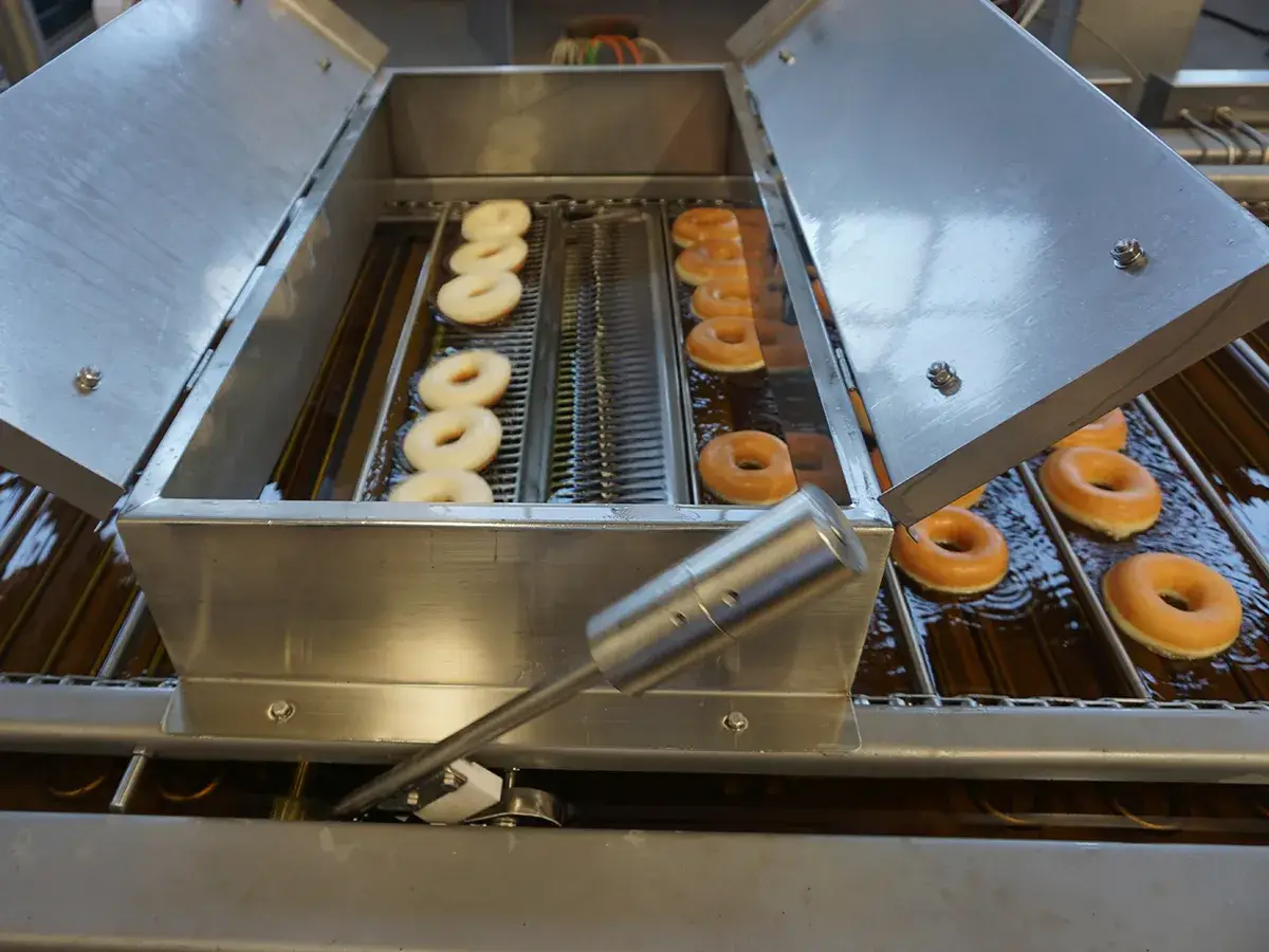 The flipping fryer is engineered specifically for large-scale production of donuts.