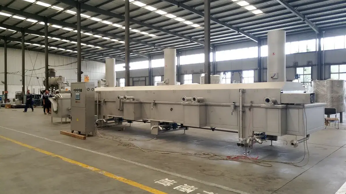 The production line is suitable for continuous production of banana, potato, and cassava chips. It also accommodates other raw materials with high dehydration rates and products that tend to float.