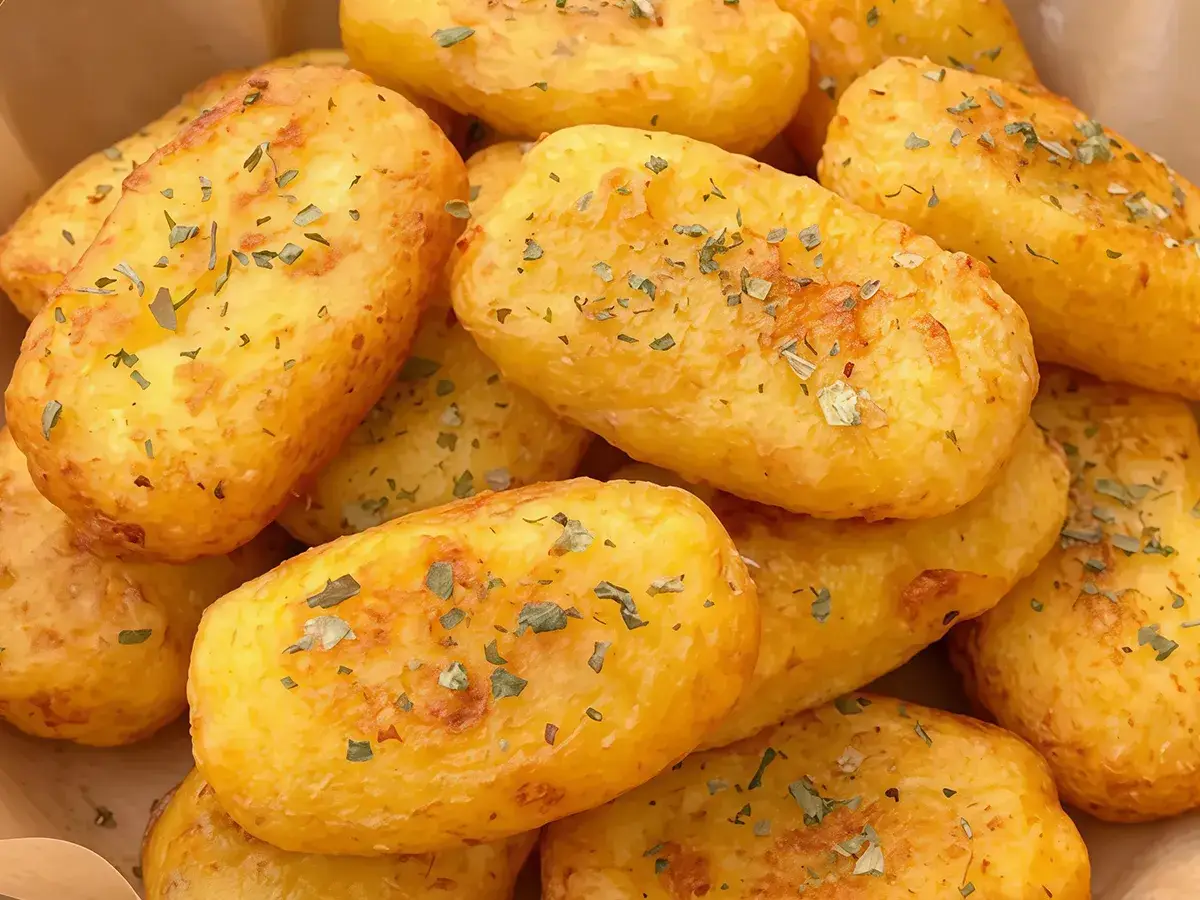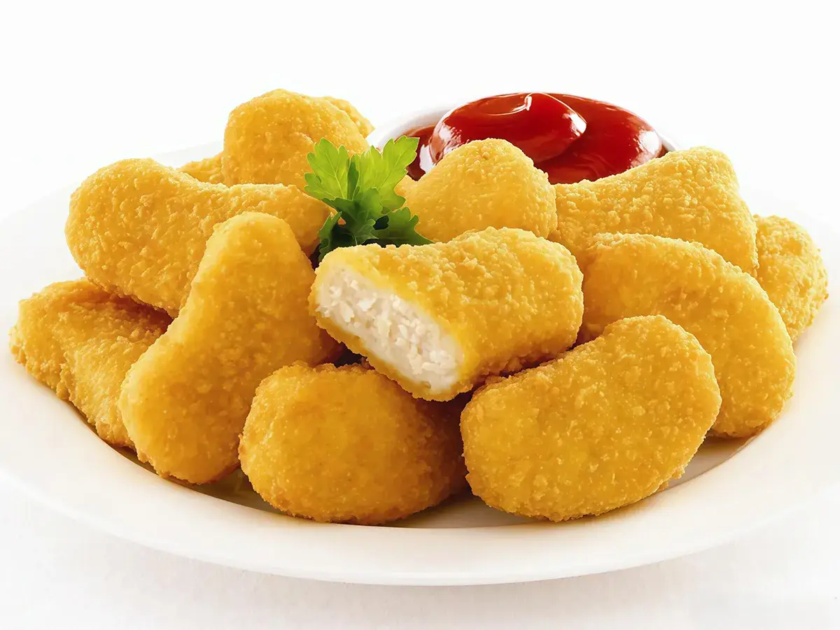 Chicken nuggets, hash browns, meat patties, tempura shrimp, chicken breast, meatballs, egg rolls, breaded vegetables, and meat substitutes.