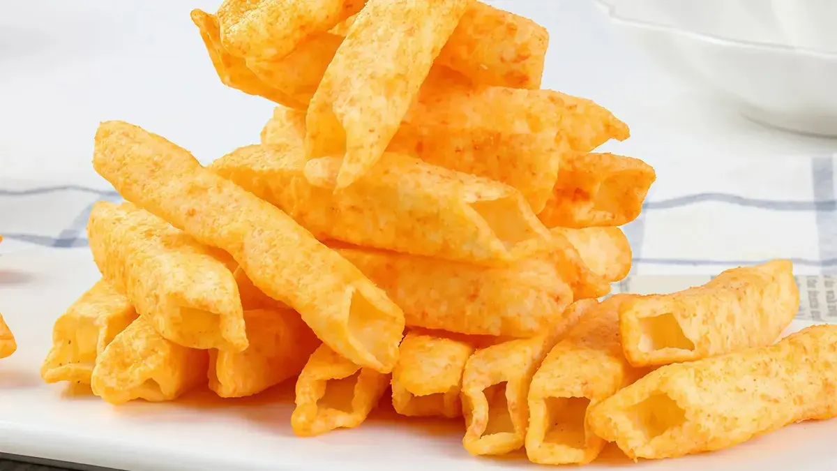 The puffed snack production line is specifically designed for the industrial mass production of extruded puffed snacks. The complete line consists of a raw material mixing system, extrusion puffing system, fryer, frying oil treatment system, de-oiling system, seasoning system, cooling system, distribution system, packaging system, and control system. The production line achieves fully automated production of puffed snack foods, ensuring high efficiency and consistent product quality through advanced automation.