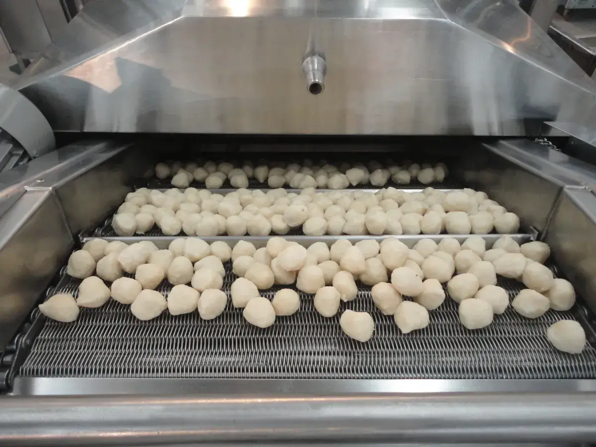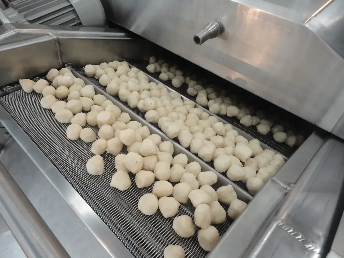 Debao Machinery continuous fryer features proprietary heating technology to effectively reduce oil consumption. It is equipped with a user-friendly interface and multiple safety alarms to protect operators and extend equipment lifespan. The fryer’s conveyor belt ensures that products are submerged in oil, achieving consistent cooking and uniform color. The equipment saves both space and energy, and can optionally include a self-cleaning function, reducing oil usage while maintaining hygienic production conditions.